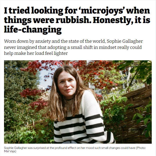I tried looking for ‘microjoys’ when things were rubbish. Honestly, it is life-changing